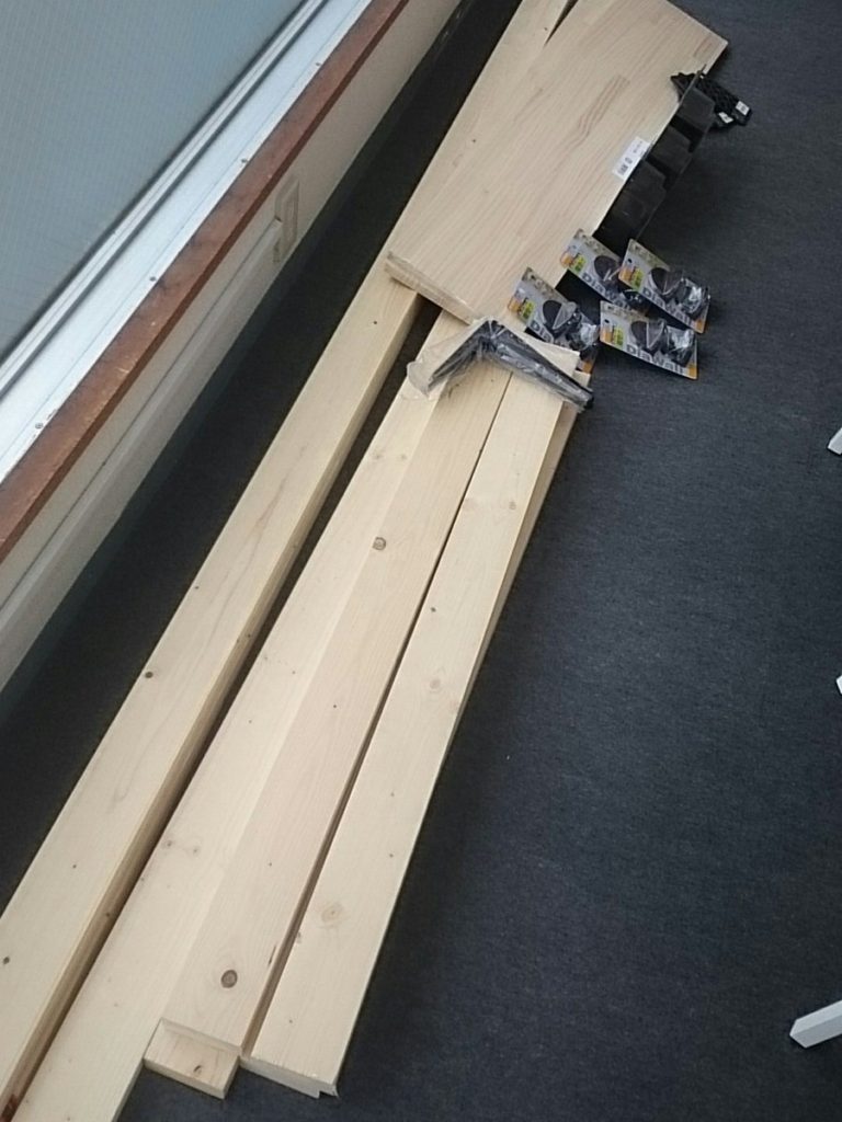 う~ん・・・、どうしようか?新たな本棚を購入しようかとサイズをはかり検索するとベストサイズがない。空いている部分にベストサイズな本棚が見つからない。それならば、「作っちゃえ!」ホームセンターにいって、簡易なDIYにチャレンジしました。