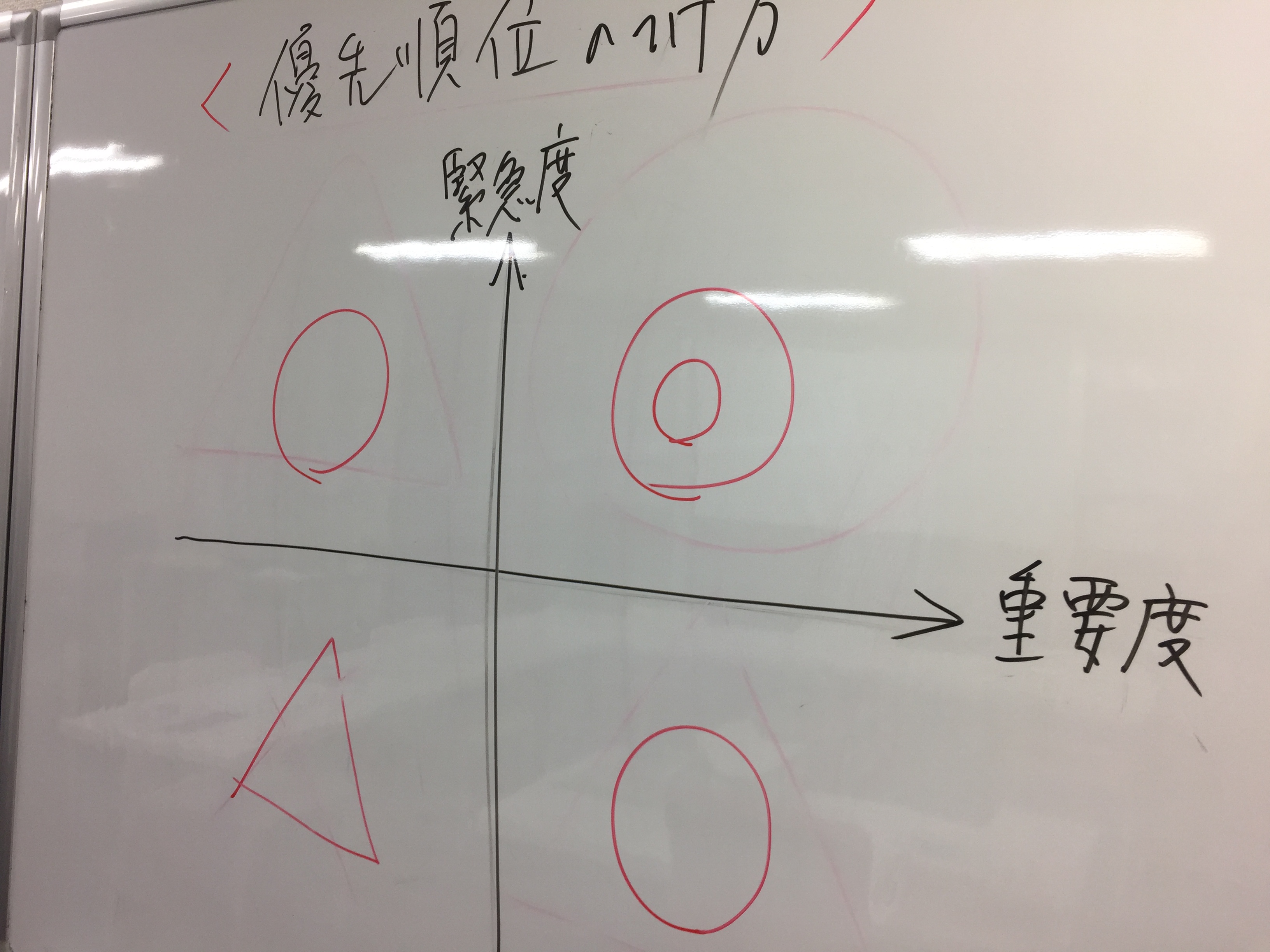 計画を立てるというのは、勉強に限らずあらゆる場面で必要になってくることだ。そこでまず意識しなければならないのが優先順位。でも「優先順位を考えろよ」と小中学生に言っても、なかなか伝わらないもの。だから、出来るだけシンプルに「重要度」と「緊急度」に分けて説明。
