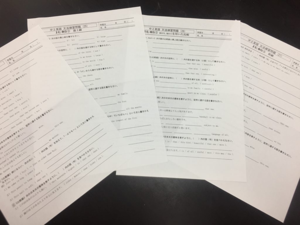 これまで3回に分けて取り扱ってきた単元「比較」。形容詞を用いたパターンは全て終えたため、ギュッとまとめて復習をしておきたい…ところだが、実力錬成用・教科書準拠用の両テキストを見ても、通塾生の現状の学力、定着度に応じた、ちょうど良い教材がない…!