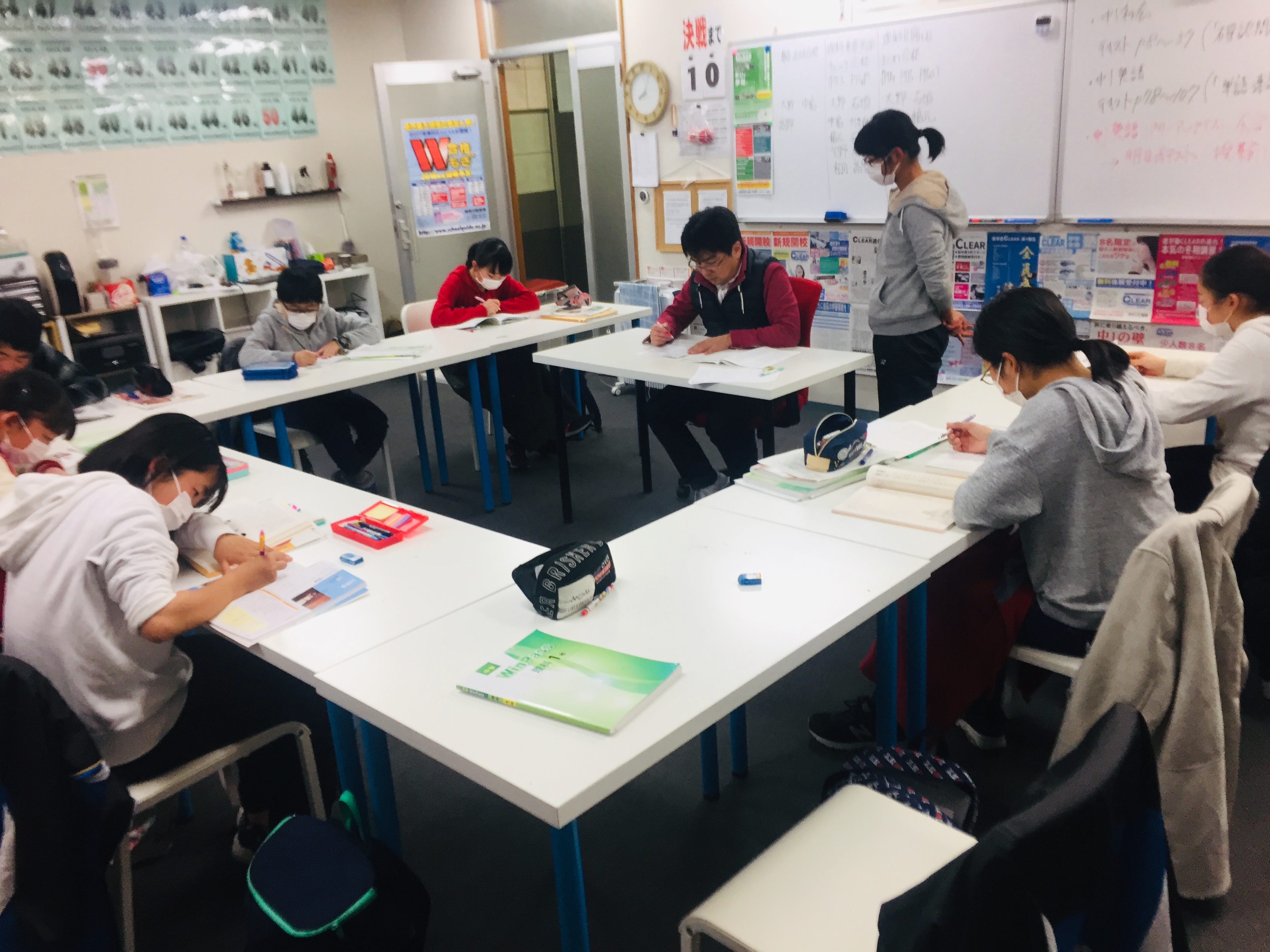 定期テスト対策3DAYS初日 2019 2/03 学びの現場より(教室の様子) 2019年2月3日 中学生の定期テスト前は、およそ10時間の追加学習を三日間かけて行う。今日はその初日だ。 本日は理系の課題を中心に進める。 学校の提出物や塾テキストを用いて個々に学習を進めさせつつ、必要に応じて対策授業や質問対応をしていく。 年度末のテストだけに、新学年に向けて弾みをつけられるような結果を求めていきたい。 一方、別室では中3受験生が今日も直向きに頑張っている。 CLEARにとっては年度末の2月。最高の結末を迎えられるよう尽力していきたい。頑張ろう!CLEAR通塾生!!! 学びの現場より(教室の様子) よかったらシェアしてね! URLをコピーしました! URLをコピーしました! 面接に向けて 覚悟と勇気と この記事を書いた人 clear 関連記事 主体性に任せてみる 2026年1月29日 努力を見える化せよ!~自学自習ランキング~ 2026年1月17日 冬期講習最終日!! 2026年1月11日 冬期講習後半戦始まる・・・!! 2026年1月8日 勉強合宿2025冬の章 2025年12月30日 原点回帰の冬期講習 2025年12月28日 高校生 冬の8時間特訓! 2025年12月28日 小学生がスゴイものを作った!! 2025年12月6日 コメント コメントする コメントをキャンセルコメント ※ 名前 ※ メール ※ サイト 次回のコメントで使用するためブラウザーに自分の名前、メールアドレス、サイトを保存する。 上に表示された文字を入力してください。