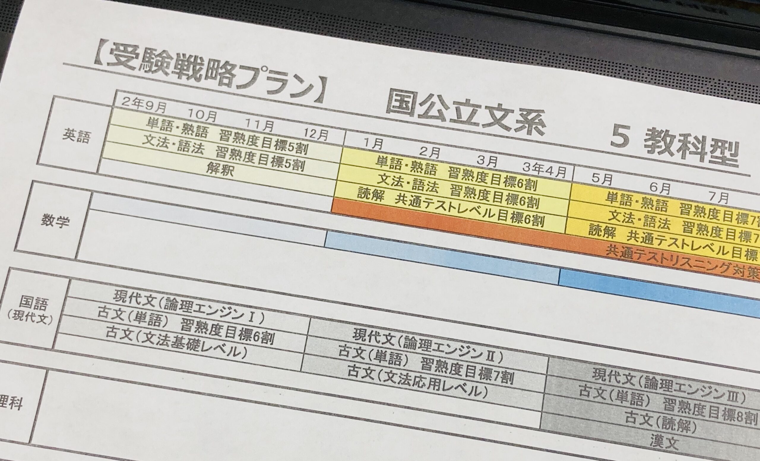 高2は9月から後期カリキュラムへと移行するため、戦略プランを作成中。