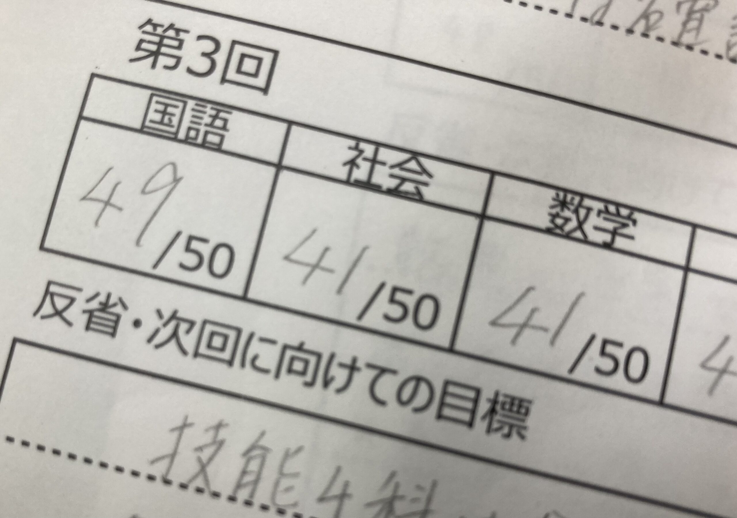学校のワークの見直しや解き直しを徹底した、とのこと。確かに折を見ては子どもたちにはテスト範囲表の見方について、その重要性を説いているが、これまでの反省からか、今回はその詰めをきっちりとやったようだ。