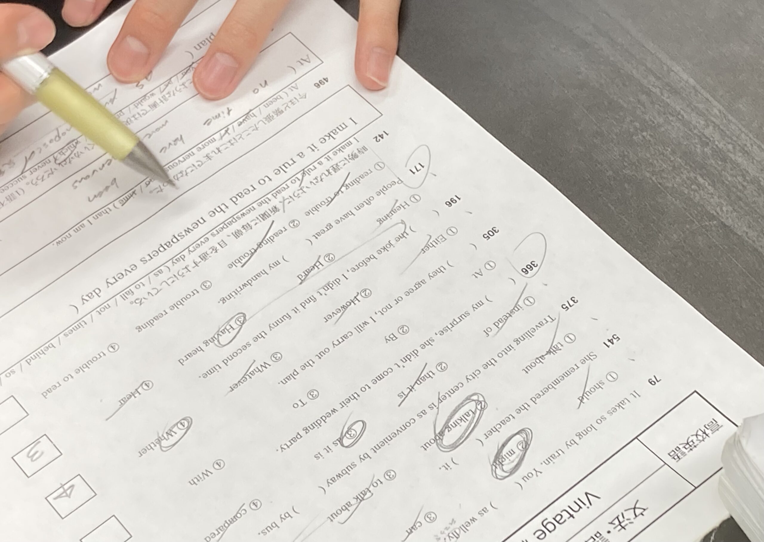 高2英語は文法&単語を毎回テスト。学校採択教材の完全定着を目指す。