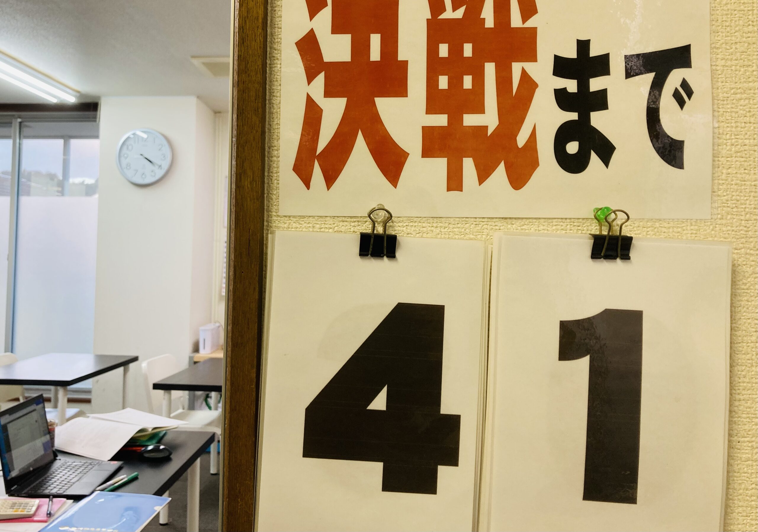 公立入試までのカウントダウン掲示もあと41日…。何とも時の流れとは速いことか…。