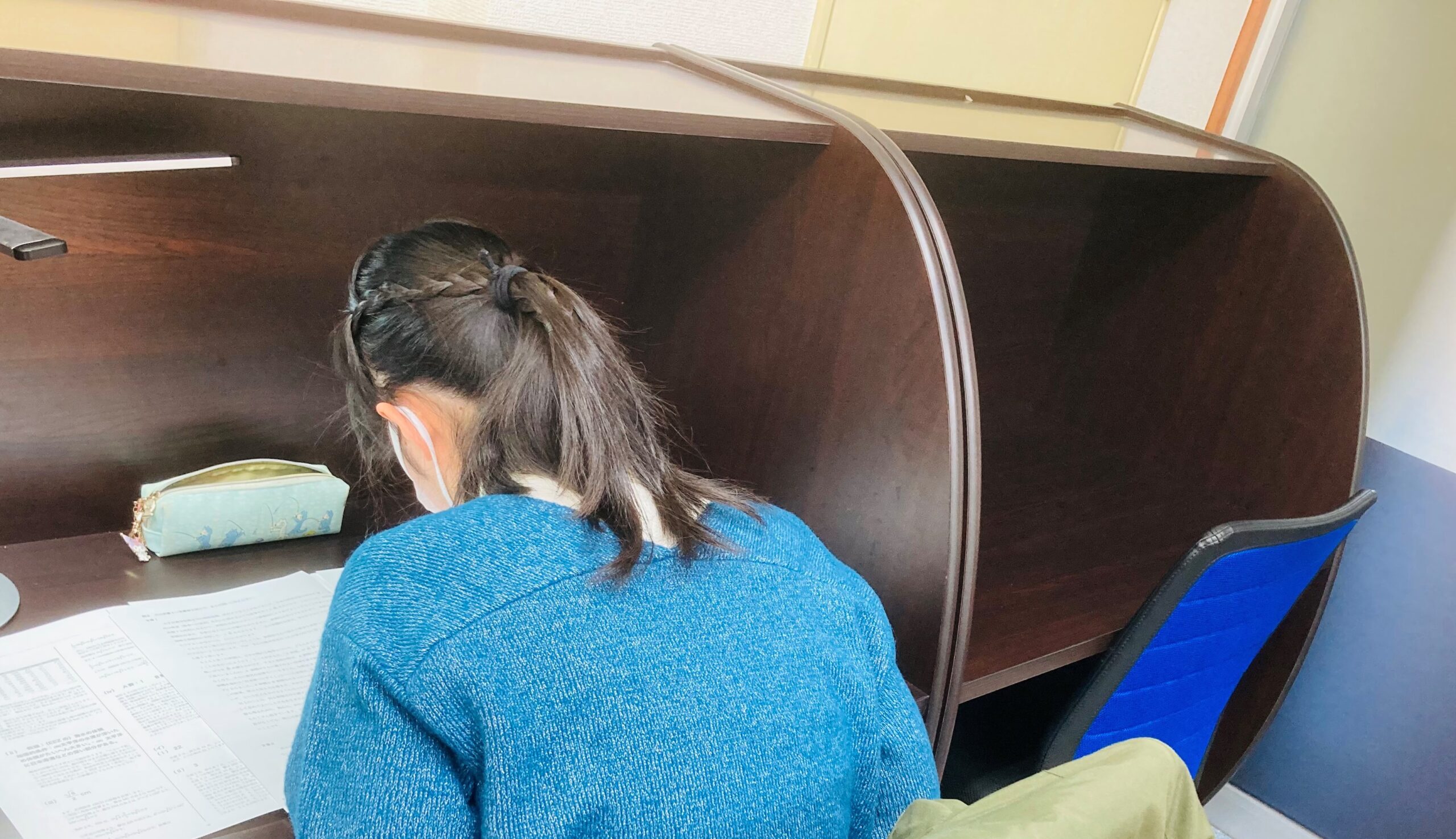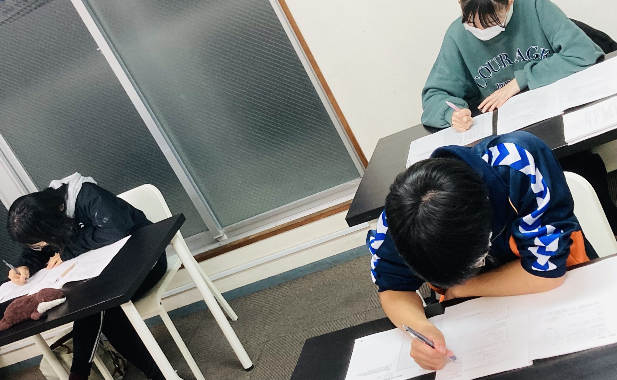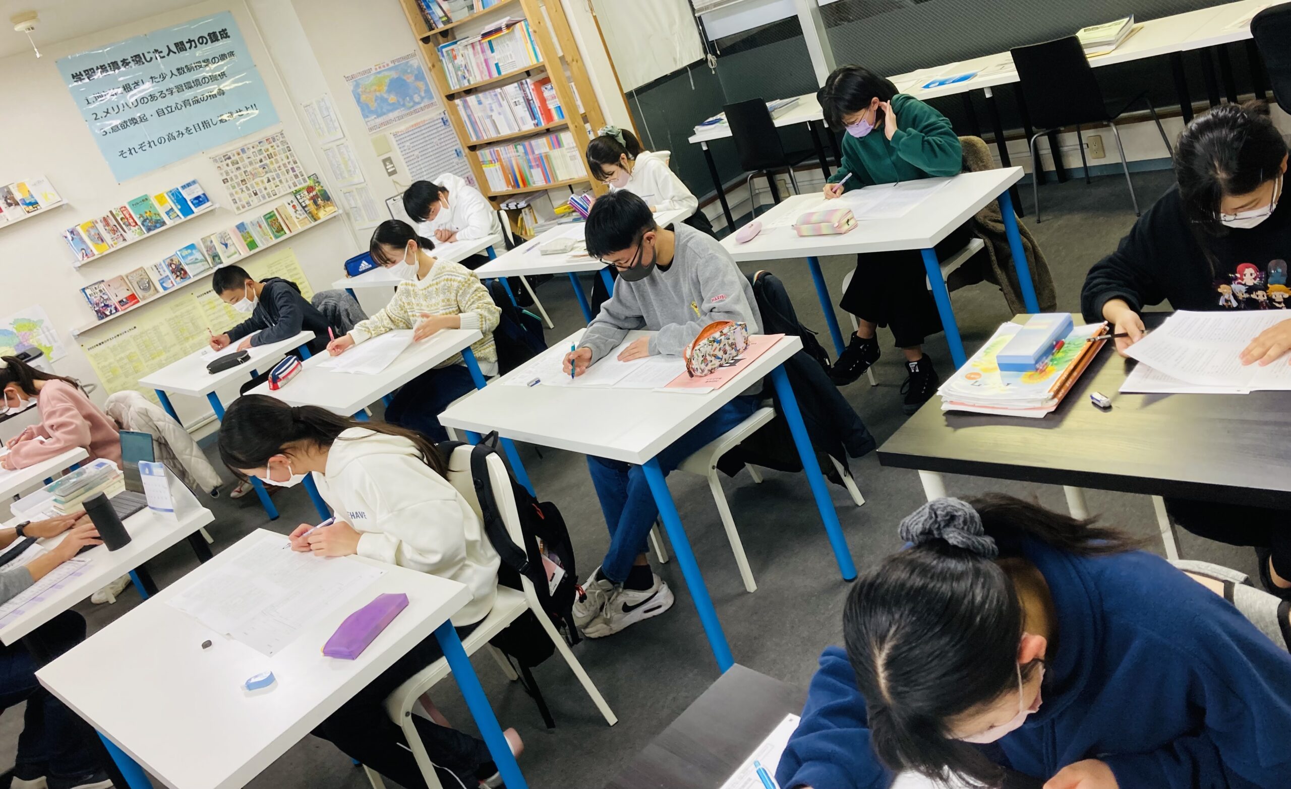 本日の学力テストに向けて自習に来た中2生。