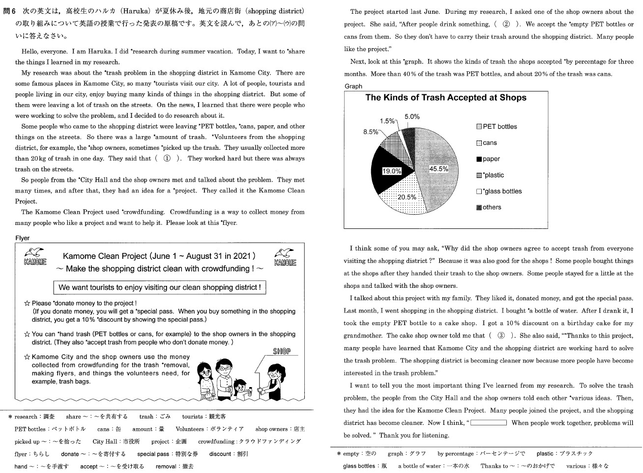 こちらは2022年度の英語の問6の本文。続く問7・問8も読解問題で、問8はハイレベル。まさに“ラスボス”にふさわしく、3~5人ほどの登場人物による会話文で絵や図を絡めたもの。