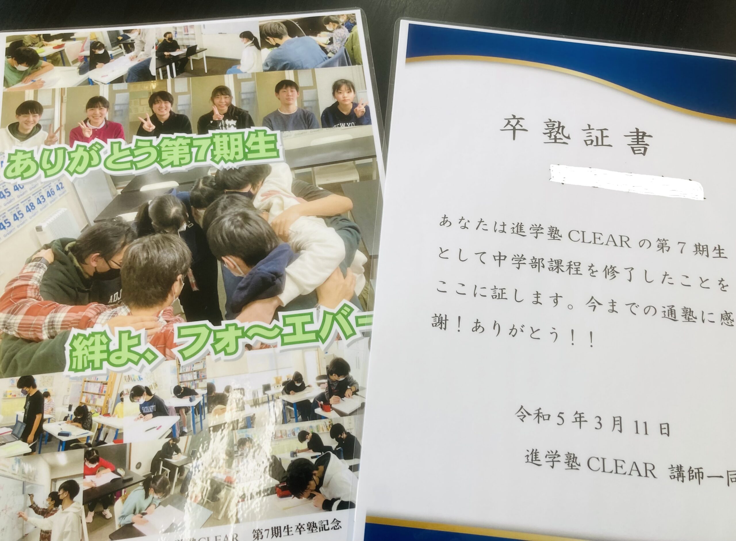 本日3/11㈯は、2月末日をもってCLEAR中学部を卒塾した第7期生の卒塾&進学祝賀会。ここ2年間はコロナの影響もあり、外での開催は控え教室内でささやかに行ってきたけれど、今年は3年ぶりに飲食店さんへ。