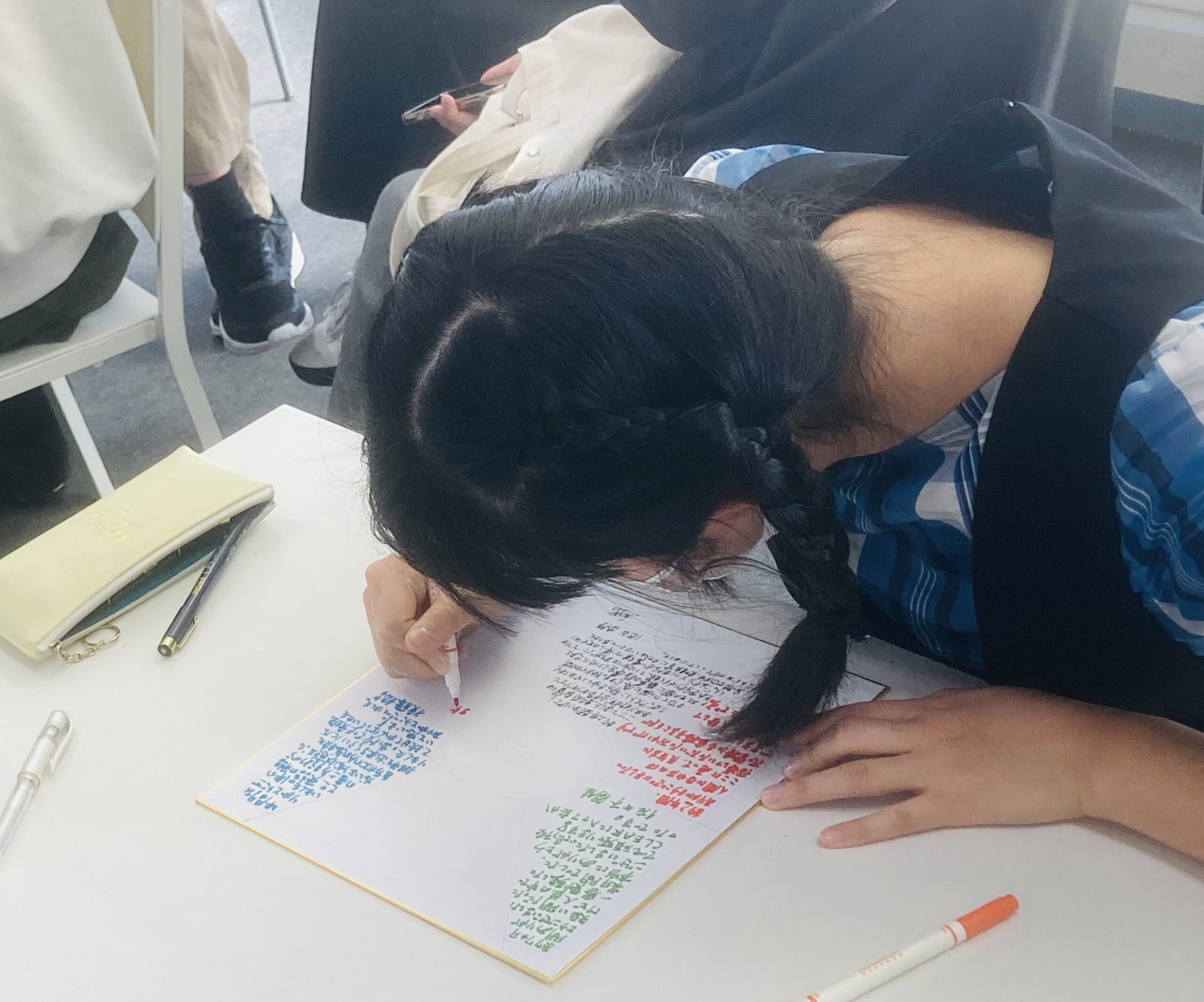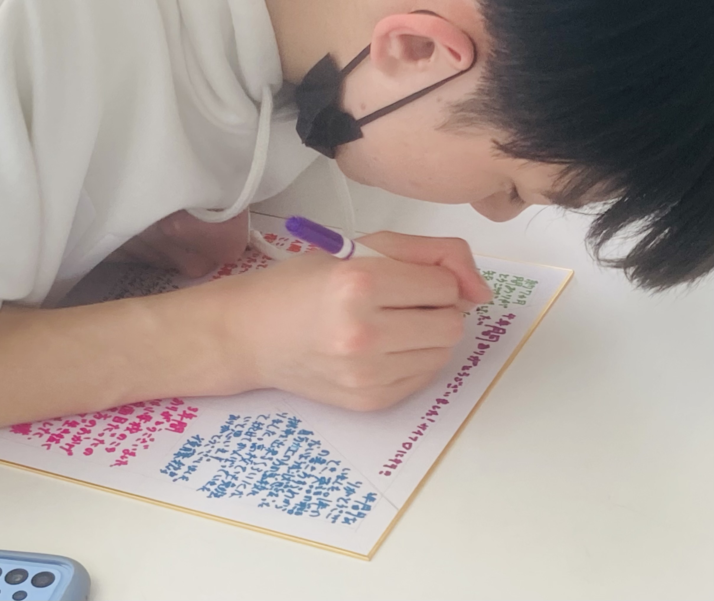 たっぷり食べた後は教室へ移動。まずは卒塾色紙にそれぞれの想いを認めてもらう。