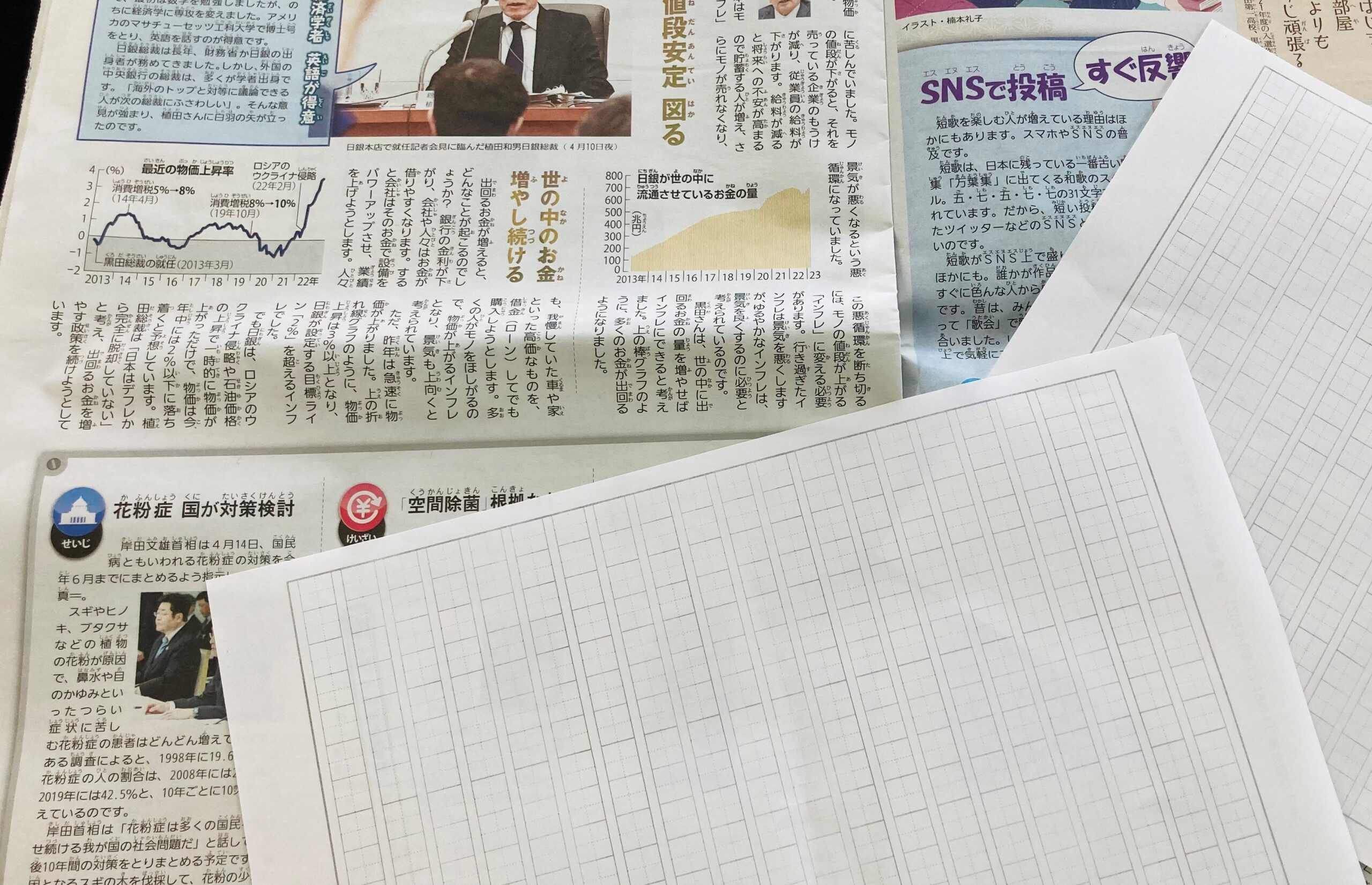 時間と手間は少しかかるだろうけれど、確実に国語力の底上げにつながる取り組みであることは間違いない。要約するには、文章の要点をおさえなればならないし、要点をおさえるには読解力が求められる。また、書くうえでは表現力も必要になる。それに、新聞を活用することで社会常識も学習できるというオマケ付き。