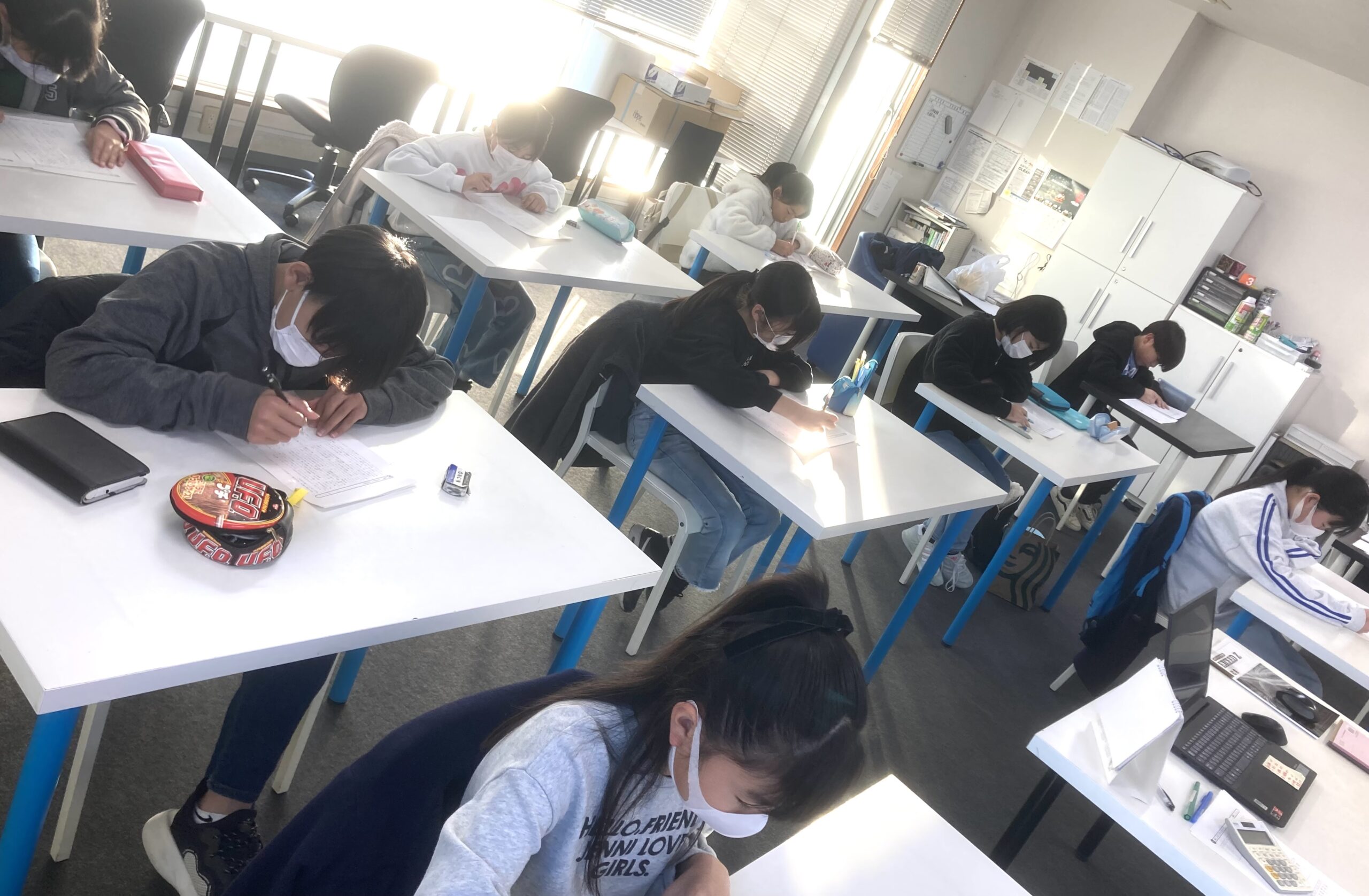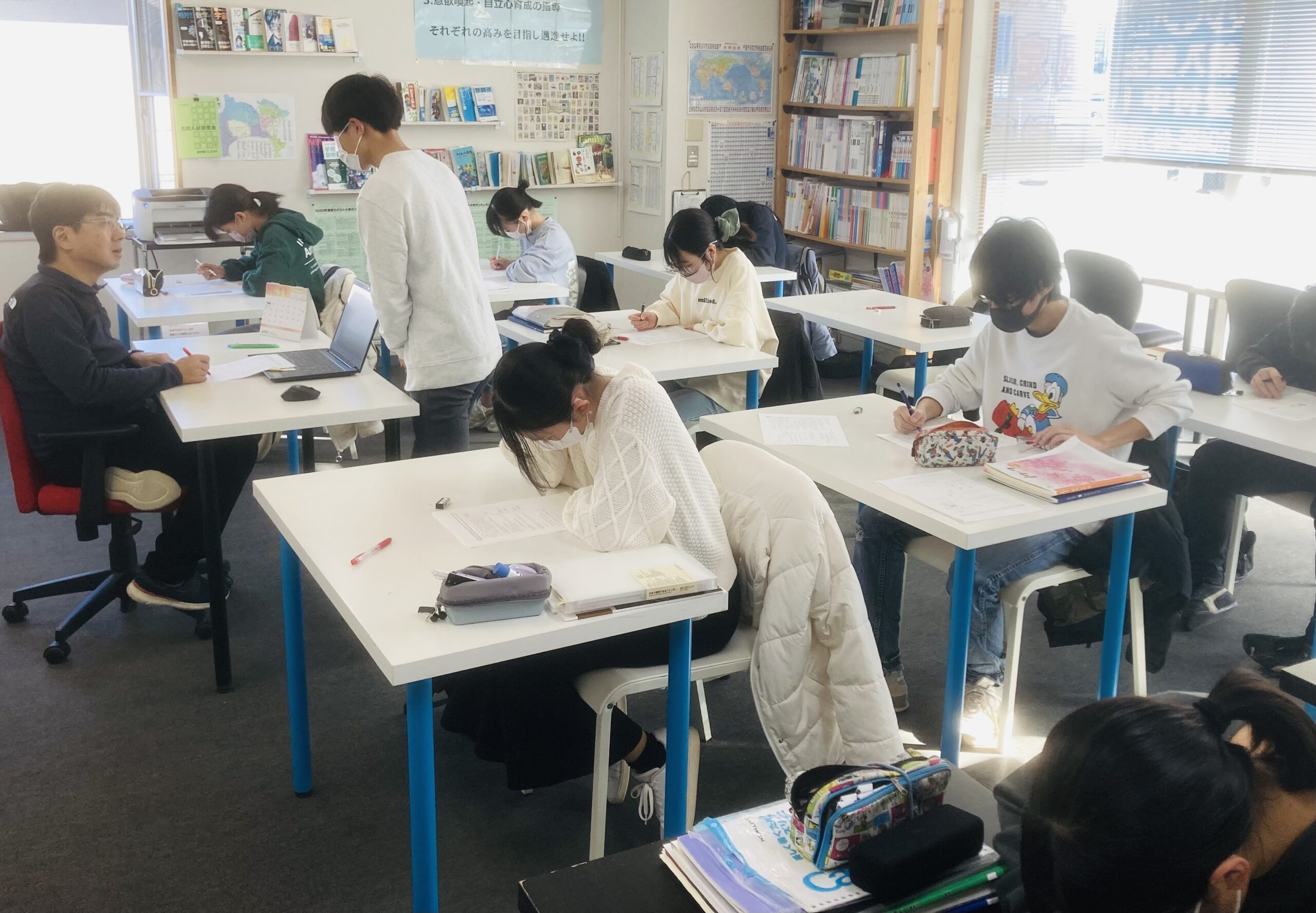 高校生に講習はないため通常指導を継続。ただし、高3受験生はまさにラストスパート期間に入っているため、共通テストの塾内模試を実施。それぞれの受験科目で仕上がり状態を測った。