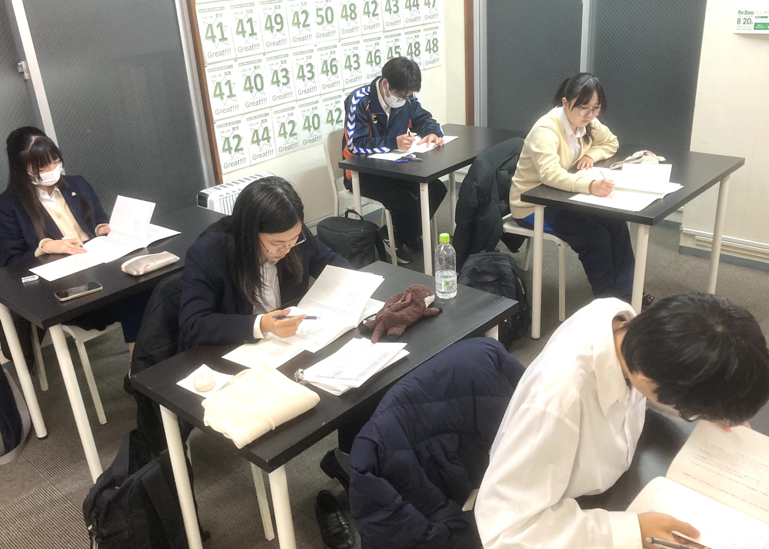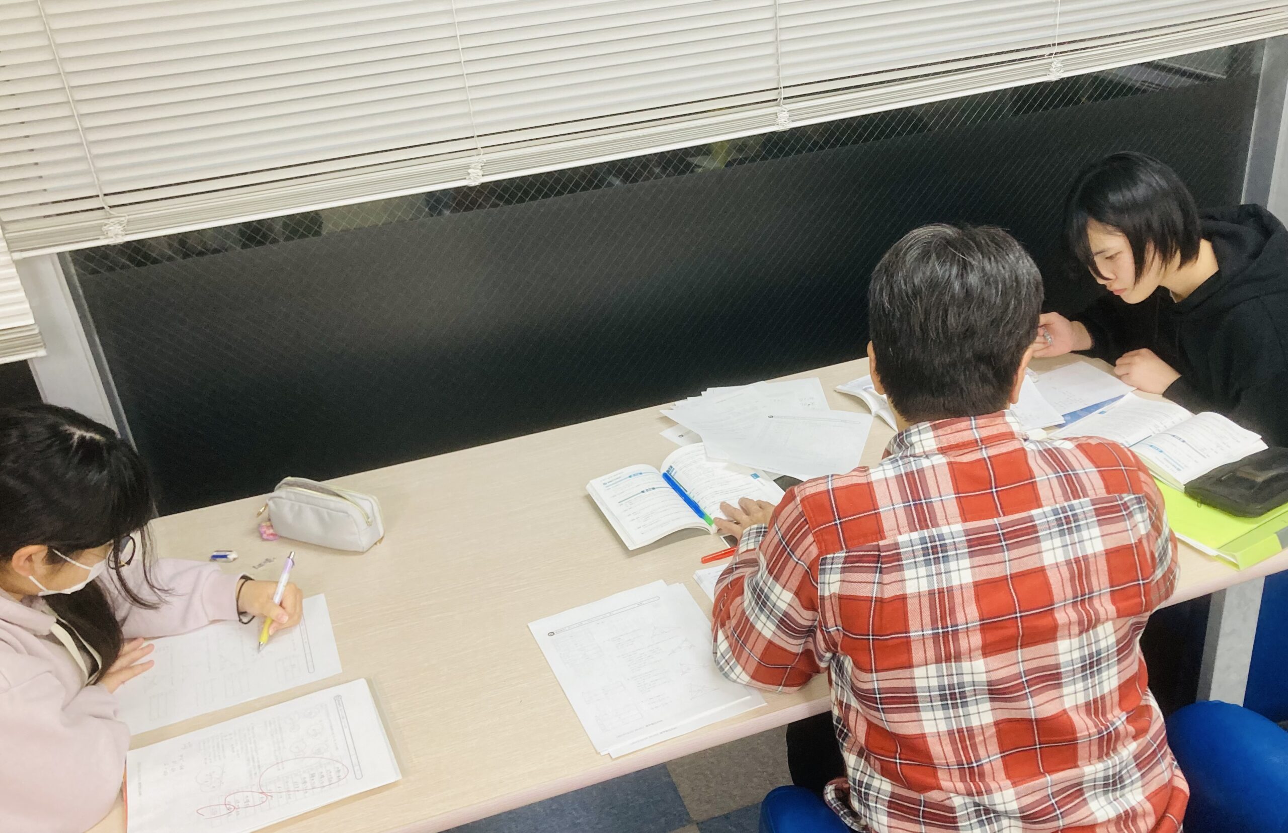 中1・中2。少し驚いたのは、ほとんどの子がそれぞれの苦手教科や分野を考えて取り組めていたこと。つい苦手教科は避け、得意教科ばかり…になりがちだが、「向き合う」が少しずつできるようになってきたのかもしれない。これも成長だ。