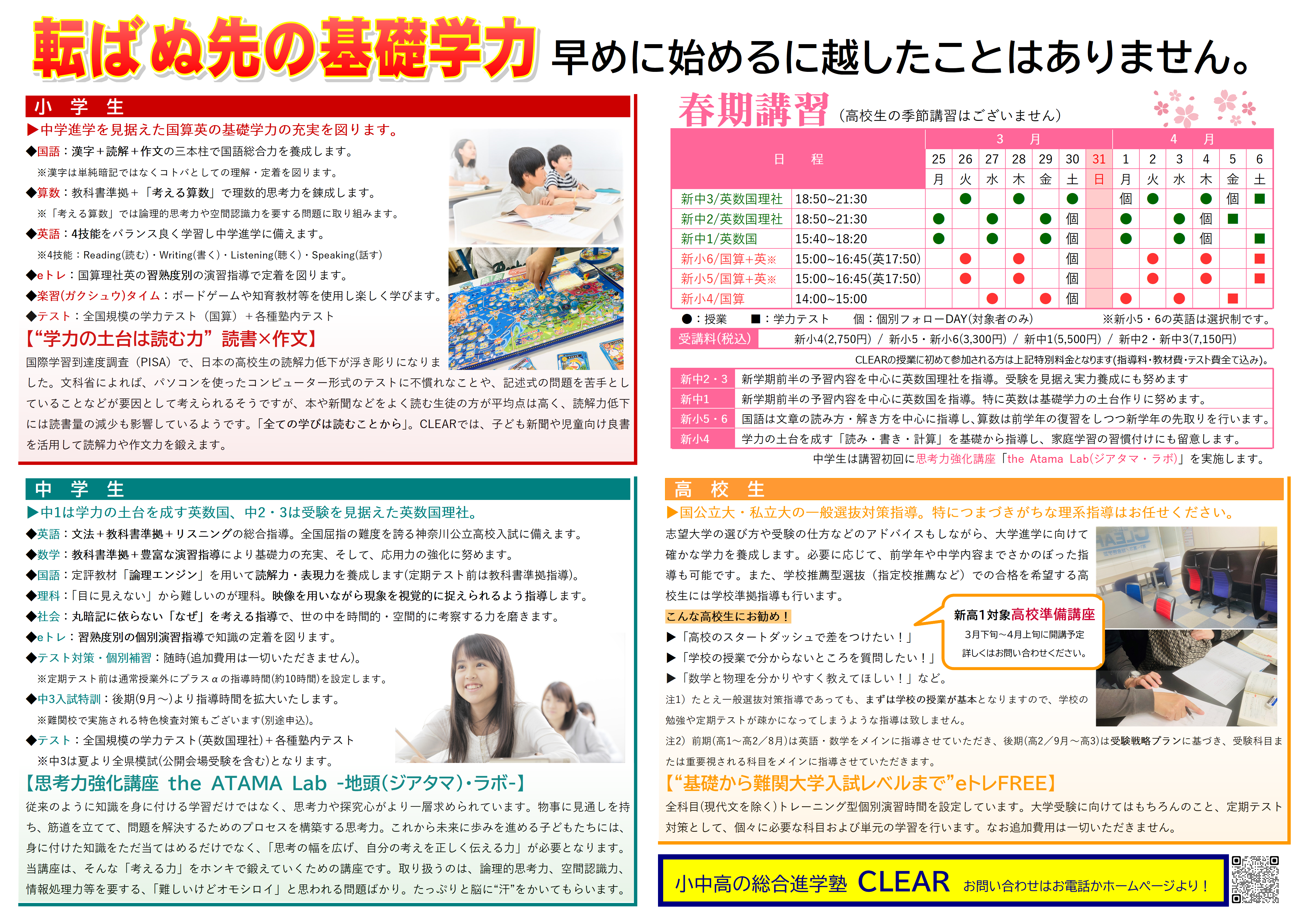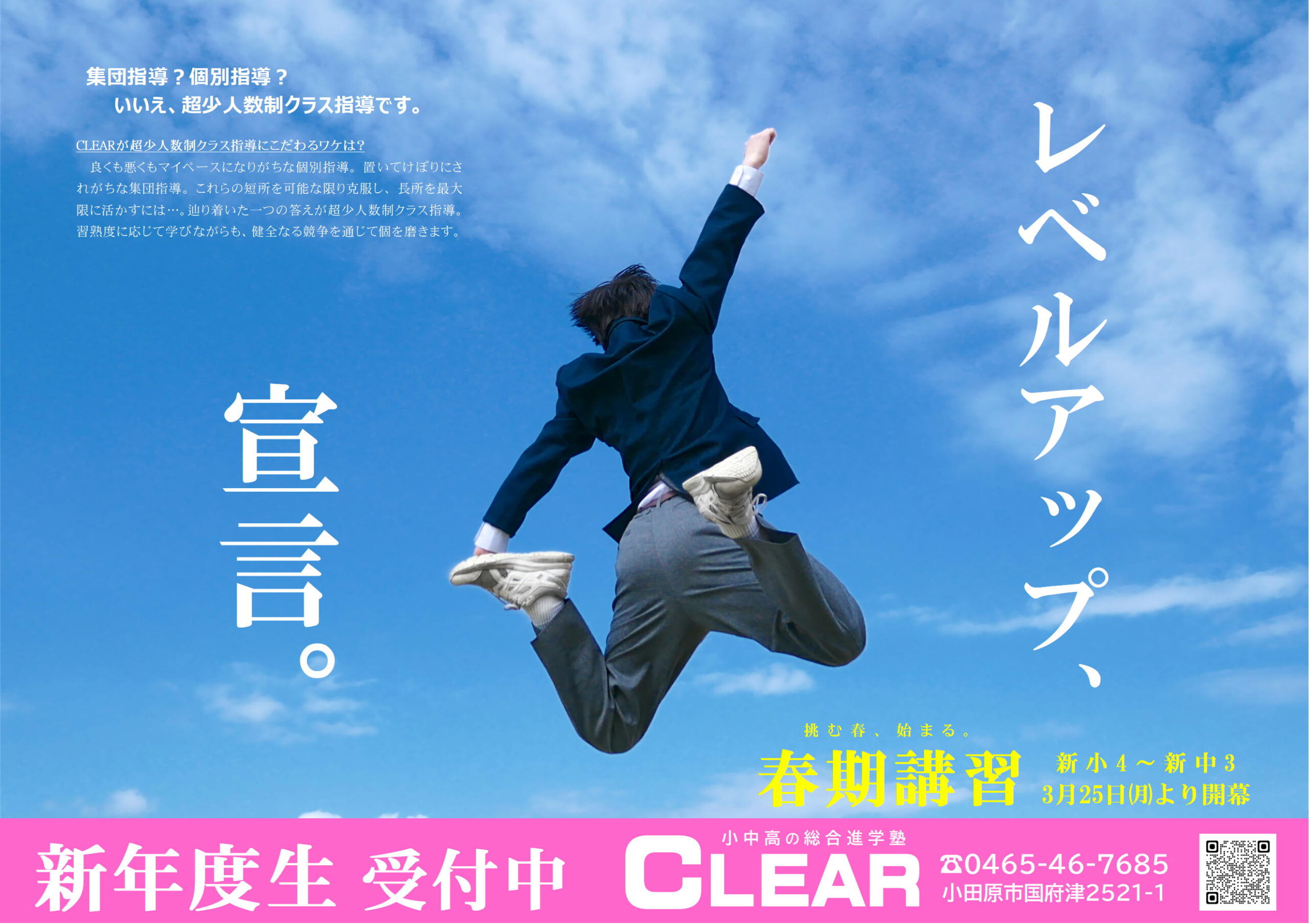 学習指導を通じた地域貢献を旗印に、“山椒は小粒でもピリリと辛い”、そんな学習塾を目指し邁進中のCLEARでは、ただいま新年度生を募集中!