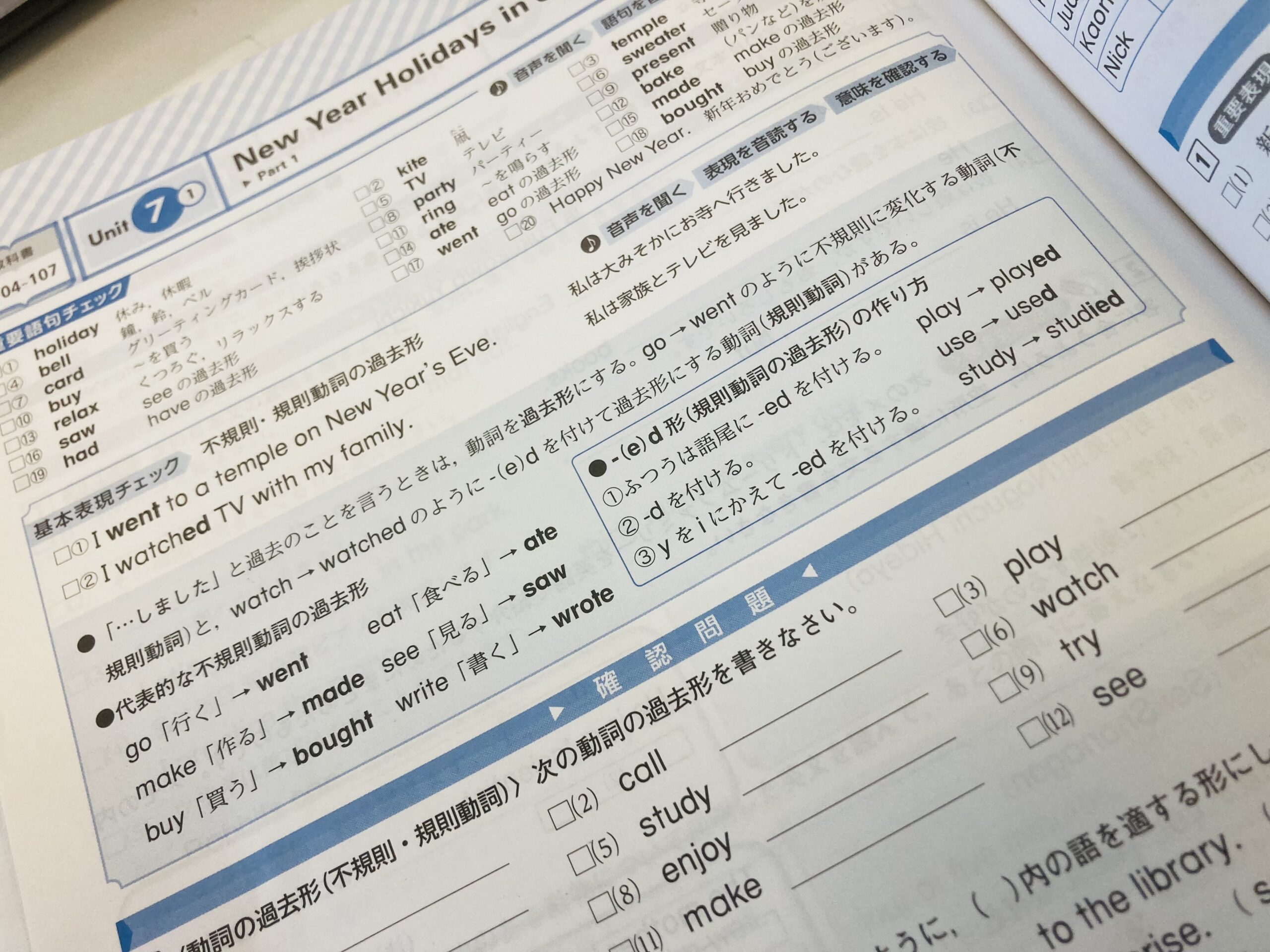 新中2は、一にも二にも動詞の使い方をしっかりと身に付けるため、以下を重点的に復習中。