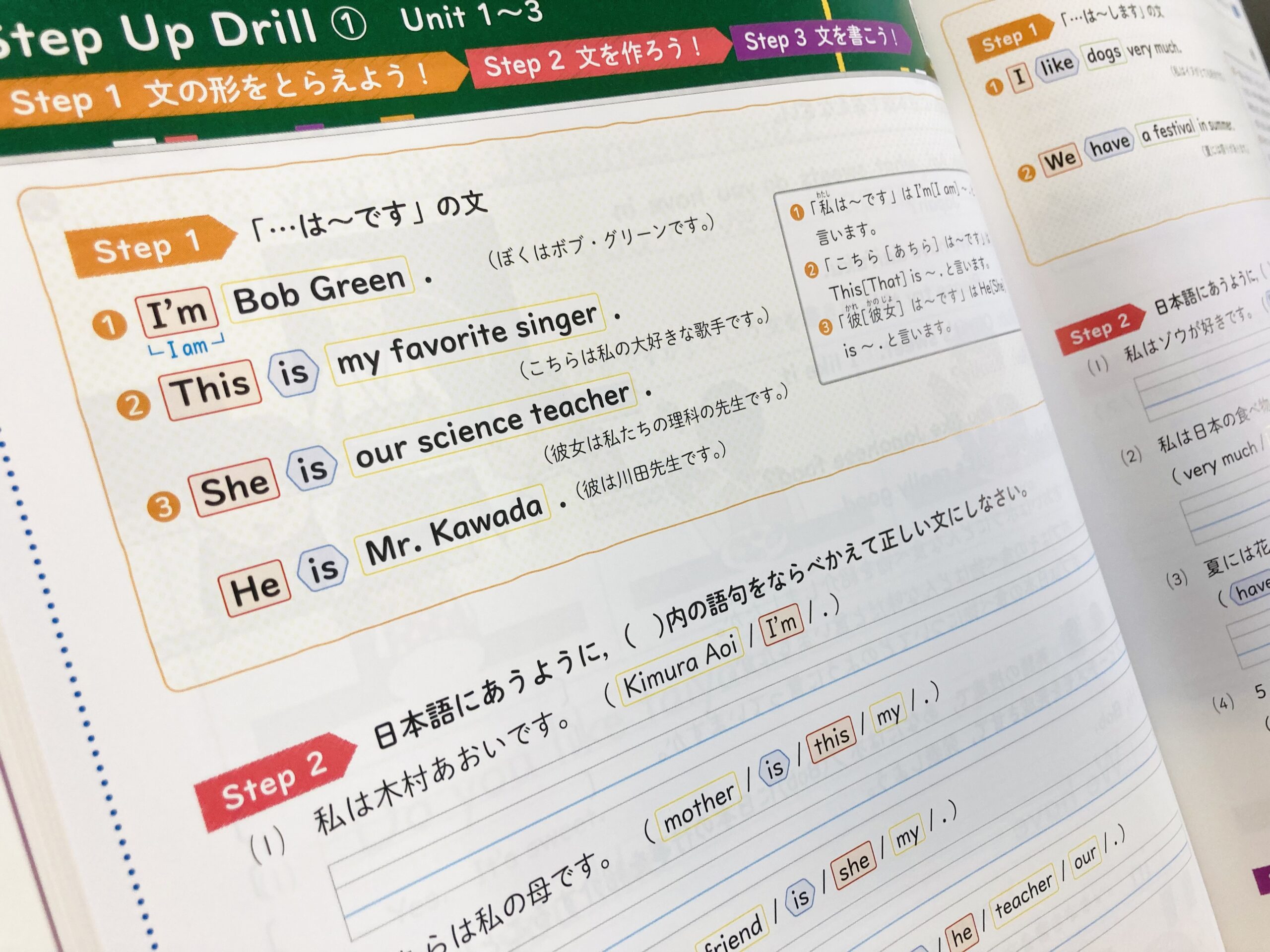 このような流れを受けて小学英語の教材も見直し、文法を意識した取り組みの機会を増やす。